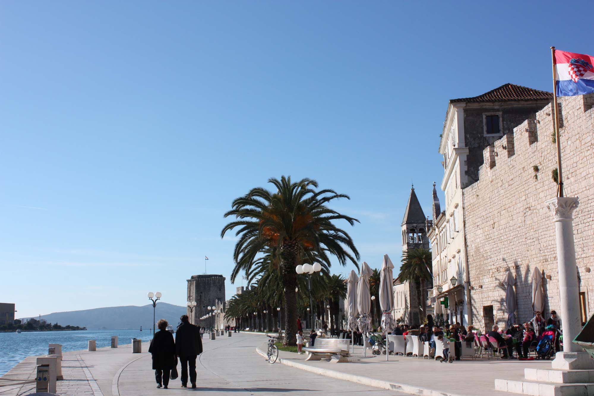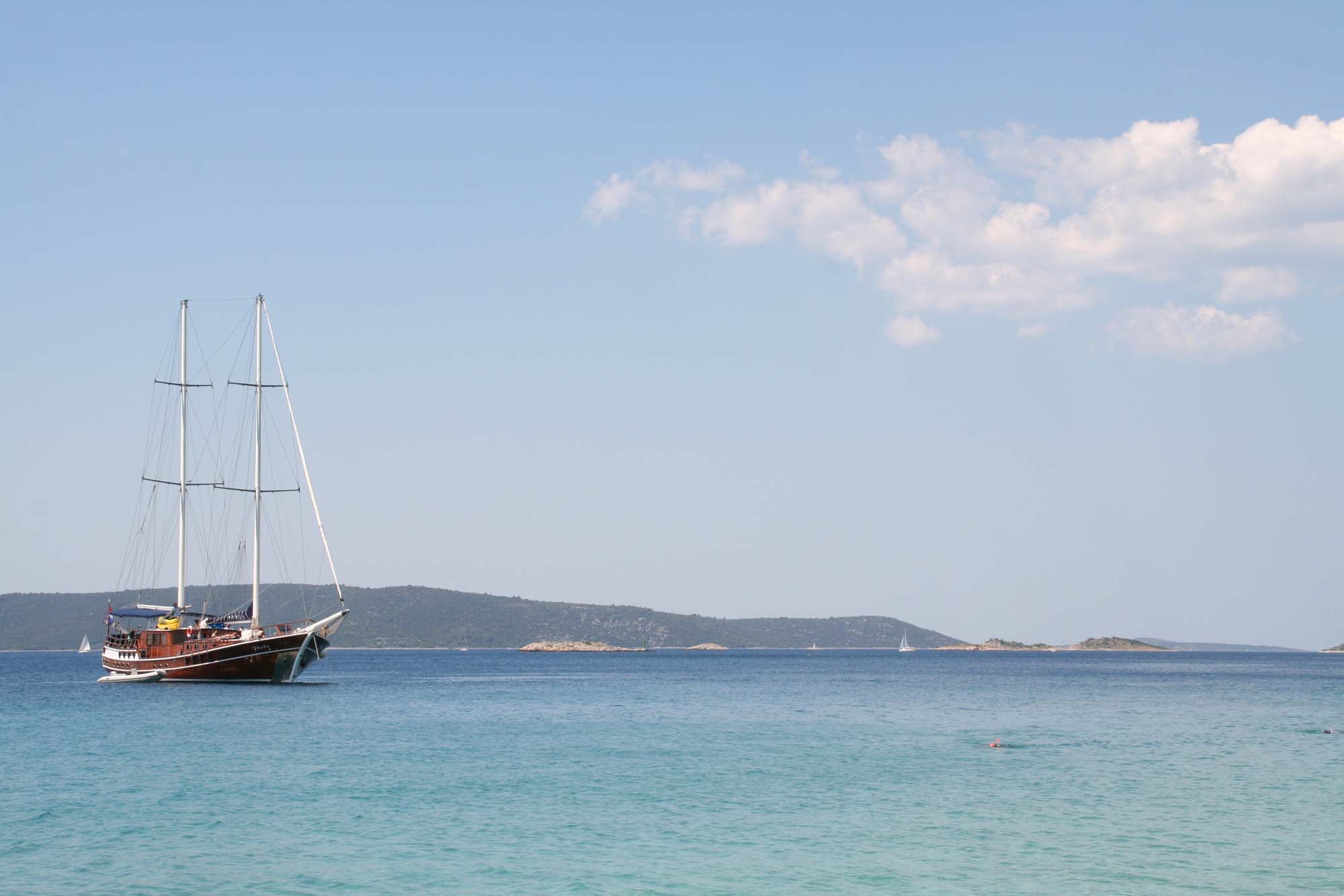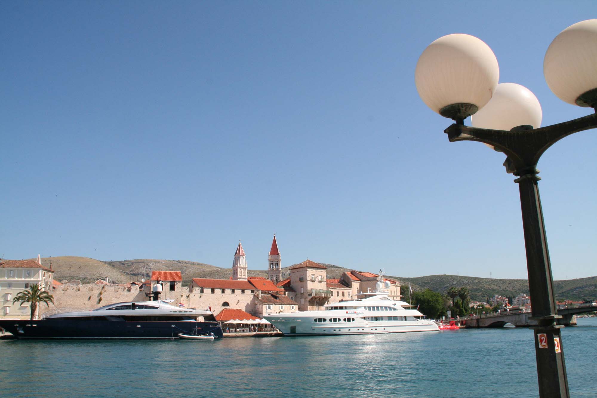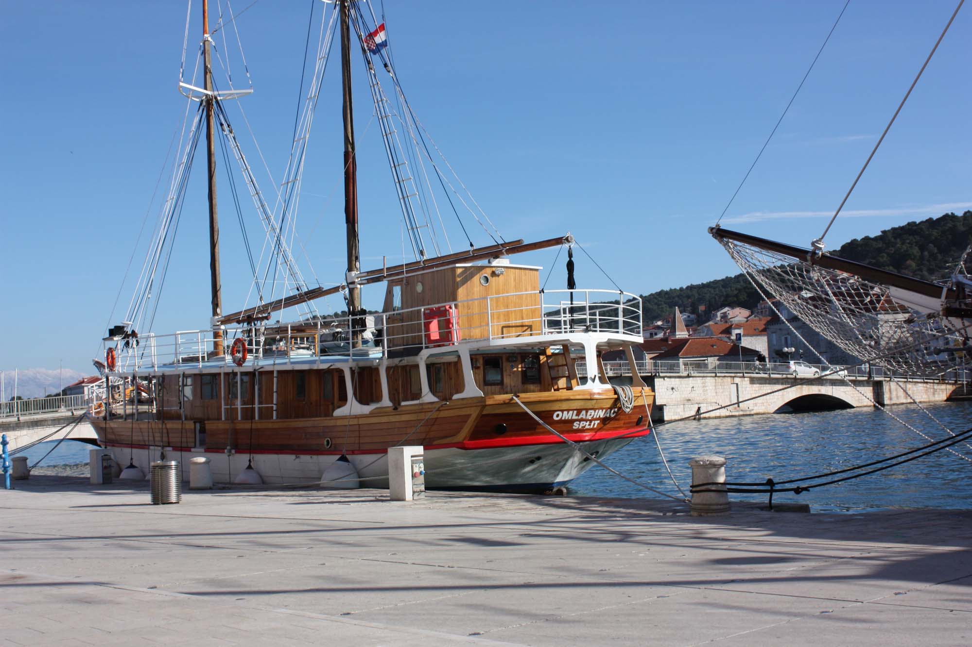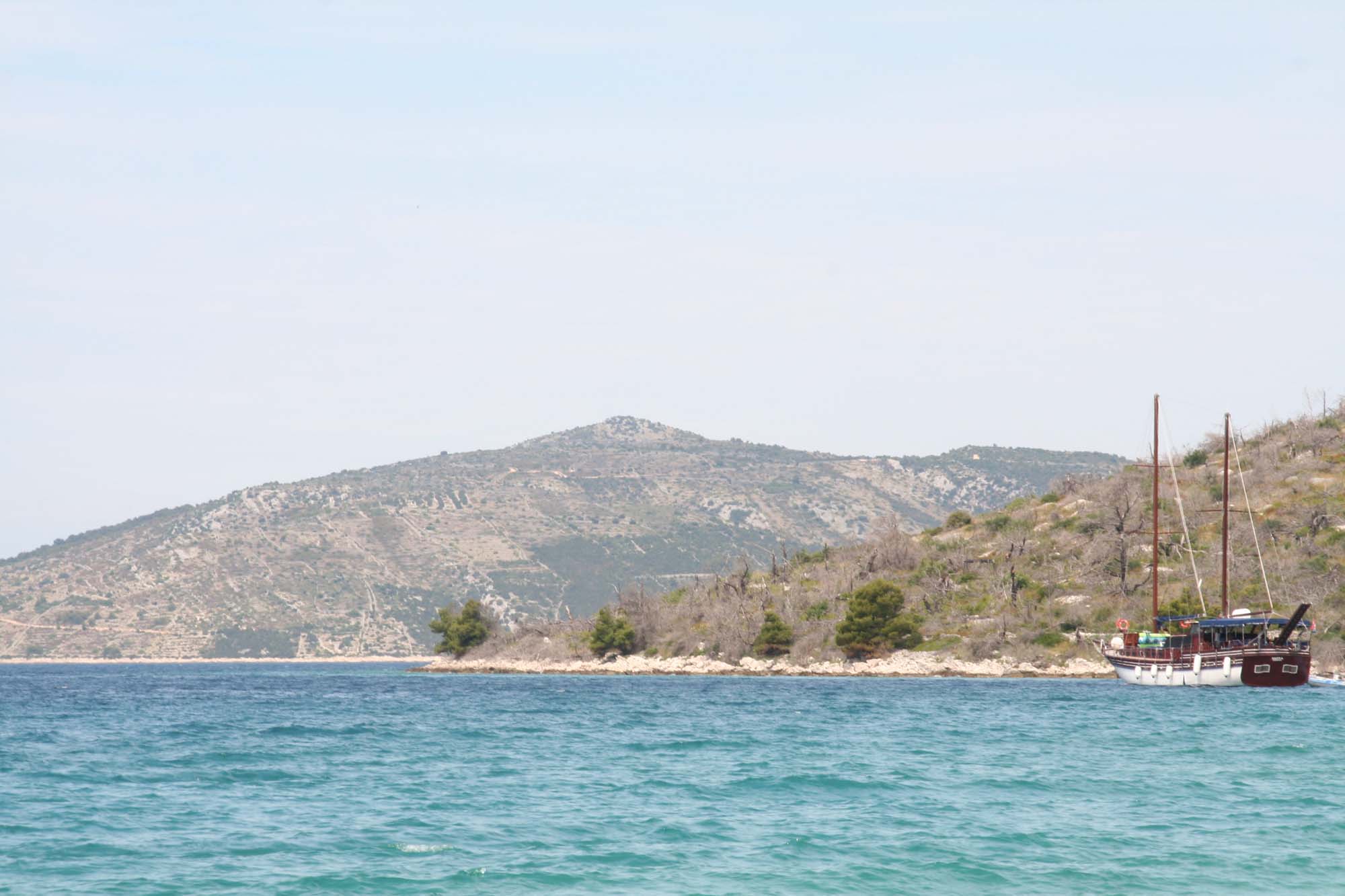 In der Hauptsaison geht stündlich ab 18.00 Uhr vom öffentlichen Badestrand ein Schiff nach Trogir hin und zurück, Fahrplan im Cafe erhältlich.