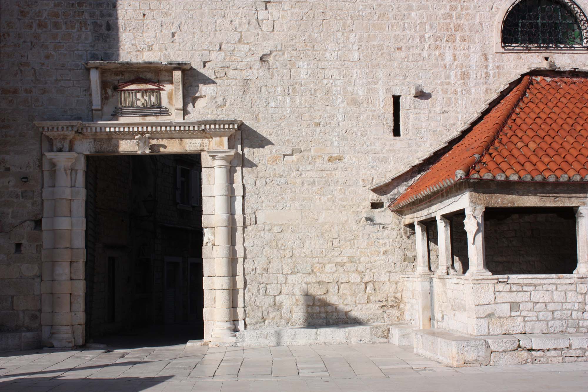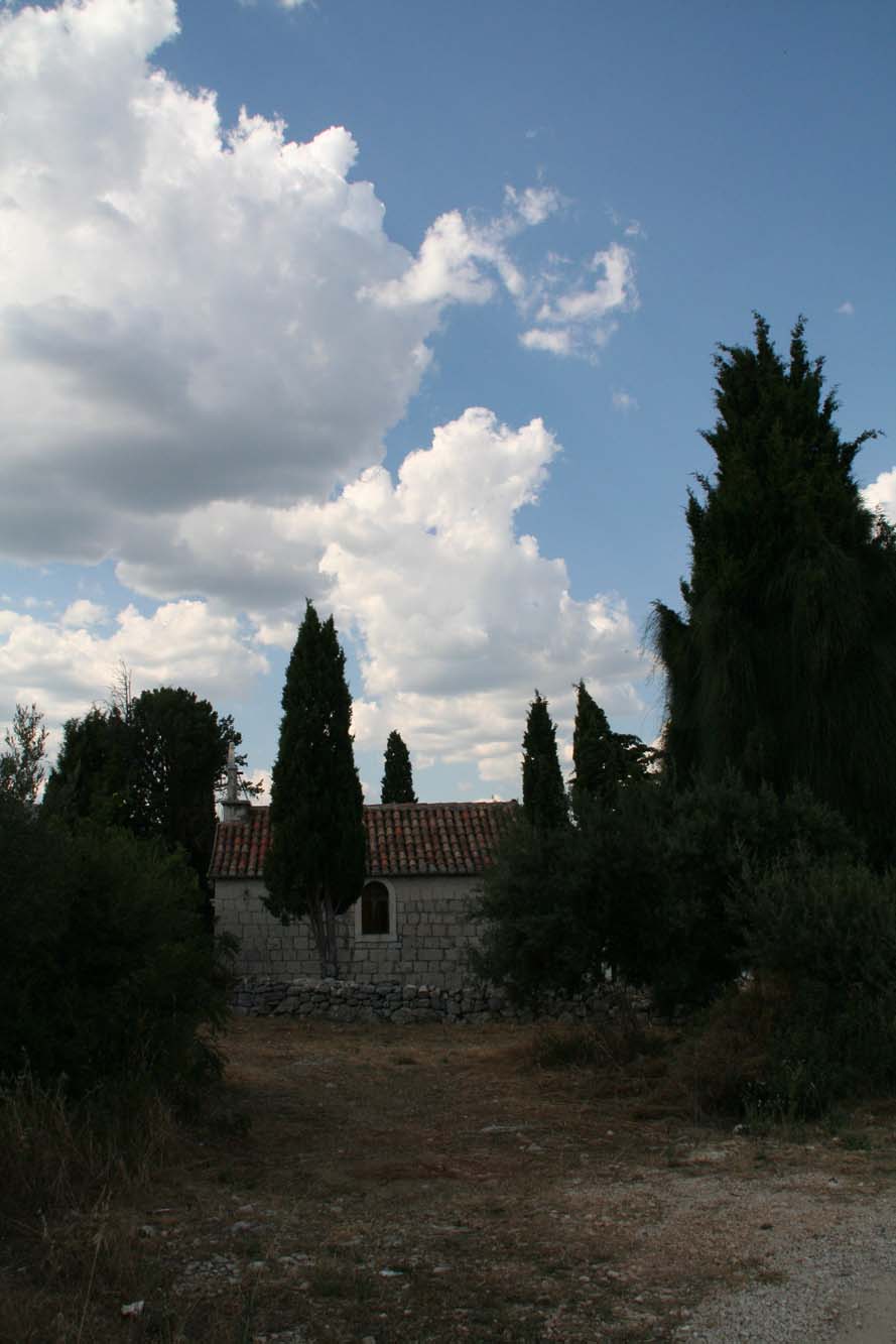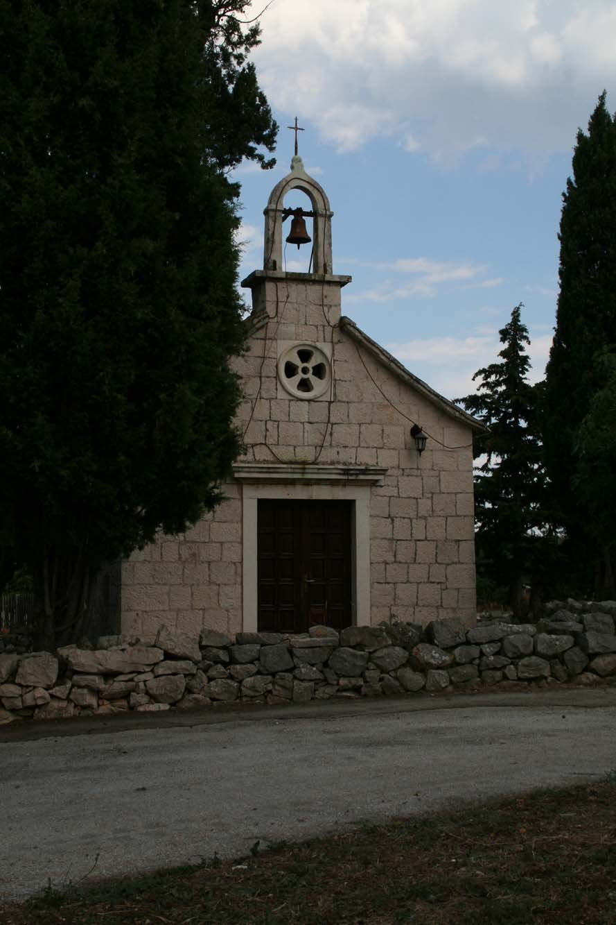 Vor dem Haus ist eine kleine Kapelle, die die Bewohner nur an besonderen Feiertagen des Jahres besuchen. Das Haus liegt im Altbaugebiet des Dorfes Okrug Donji, ca 10 km entfernt von der Touristenmeile auf der Insel.